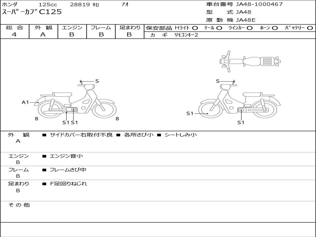 | Номер рамы / VIN | JA48-1000467 |