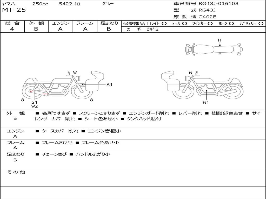 | Номер рамы / VIN | RG43J-016108 |