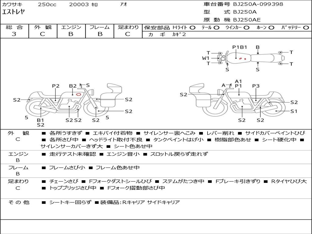 | Номер рамы / VIN | BJ250A-099398 |