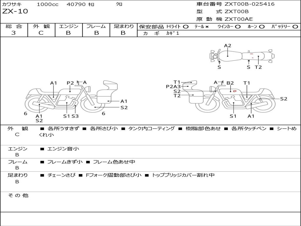 | Номер рамы / VIN | ZXT00B-025416 |