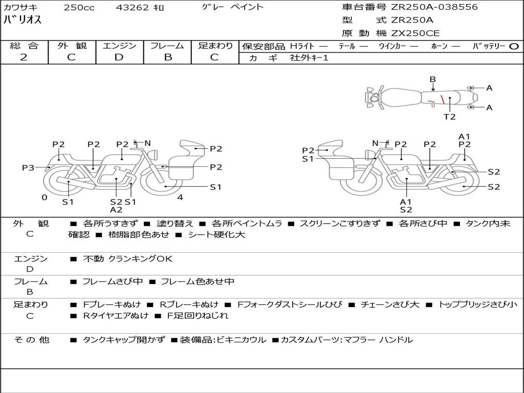 | Номер рамы / VIN | ZR250A-038556 |