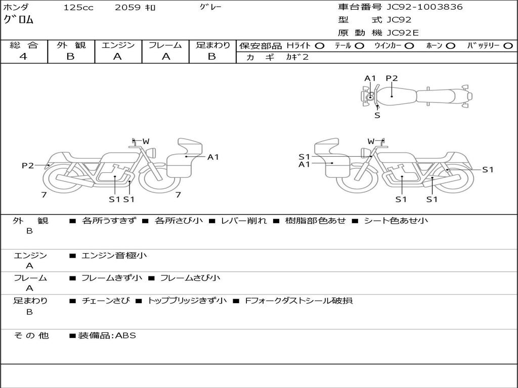 | Номер рамы / VIN | JC92-1003836 |