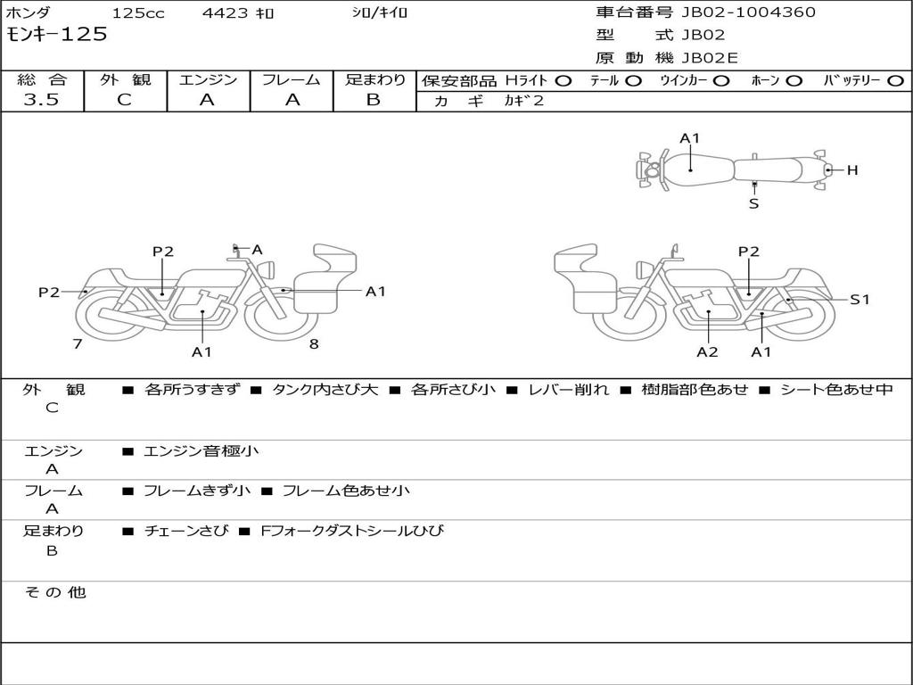 | Номер рамы / VIN | JB02-1004360 |