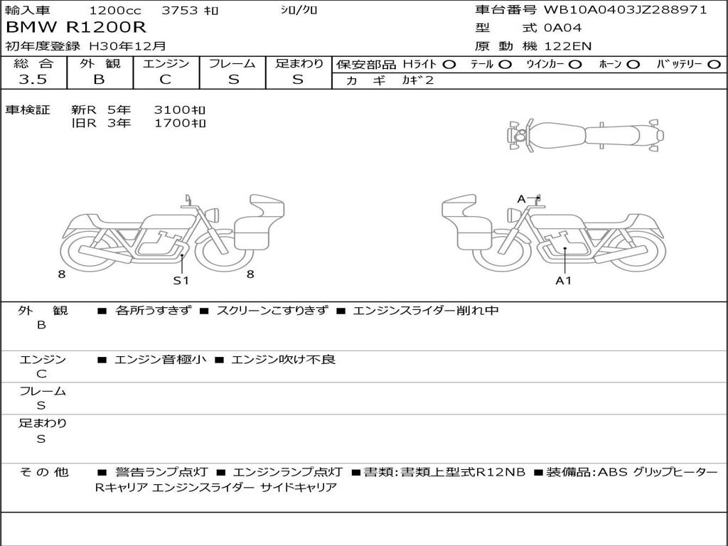 | Номер рамы / VIN | WB10A0403JZ288971 |