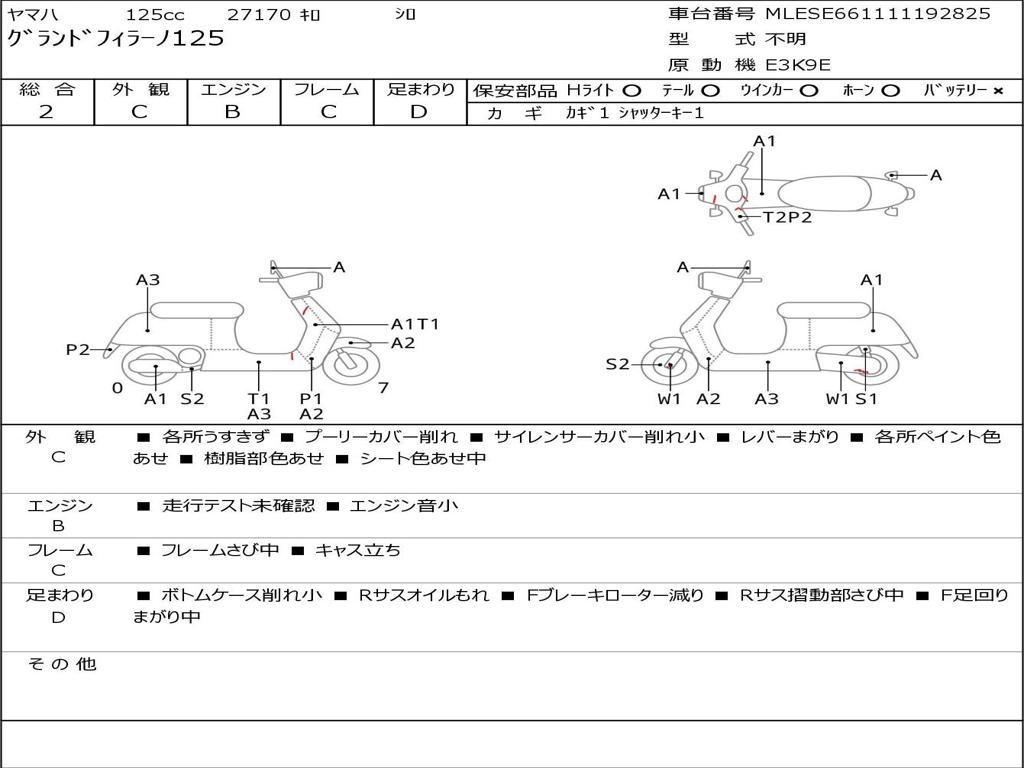 | Номер рамы / VIN | MLESE661111192825 |