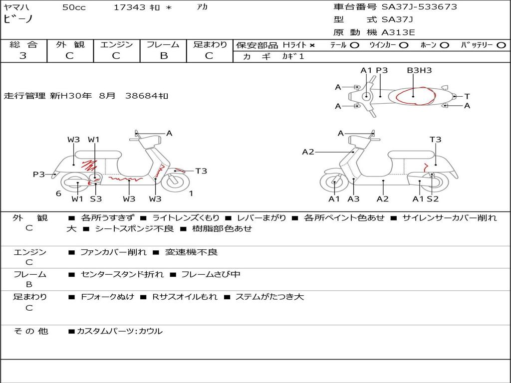 | Номер рамы / VIN | SA37J-533673 |