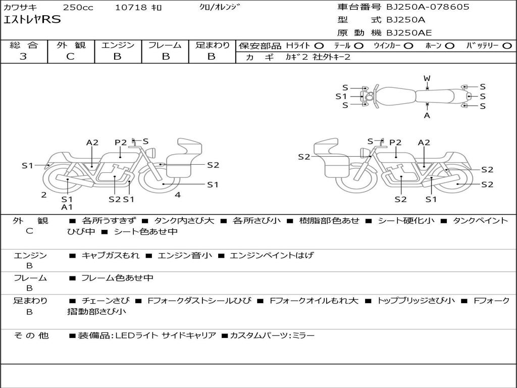 | Номер рамы / VIN | BJ250A-078605 |