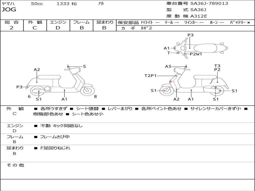 | Номер рамы / VIN | SA36J-789013 |