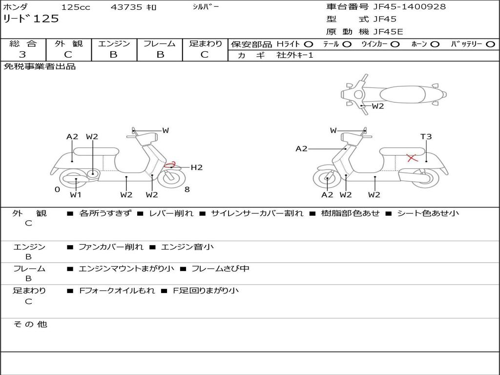 | Номер рамы / VIN | JF45-1400928 |