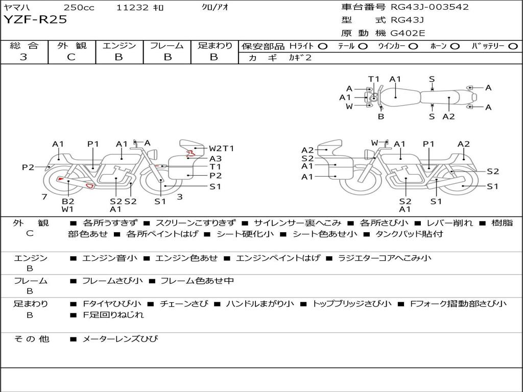 | Номер рамы / VIN | RG43J-003542 |