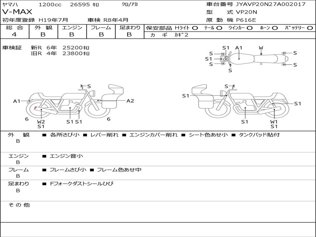 | Номер рамы / VIN | JYAVP20N27A002017 |