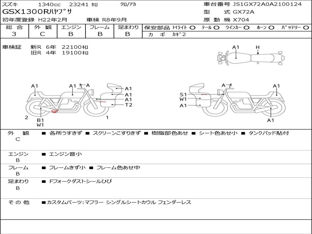 | Номер рамы / VIN | JS1GX72A0A2100124 |