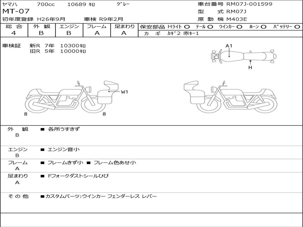 | Номер рамы / VIN | RM07J-001599 |