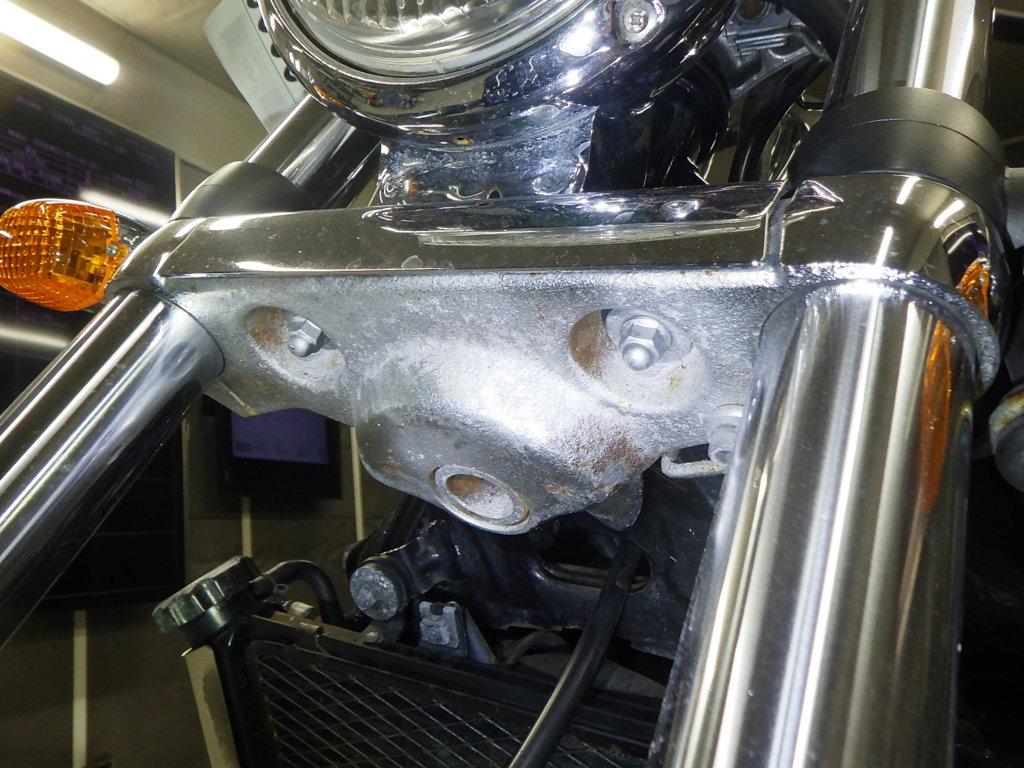 | внешняя часть вилки | царапины, следы коррозии <много>, неисправен сальник |