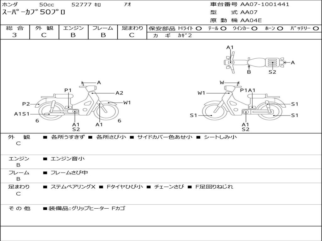 | Номер рамы / VIN | AA07-1001441 |