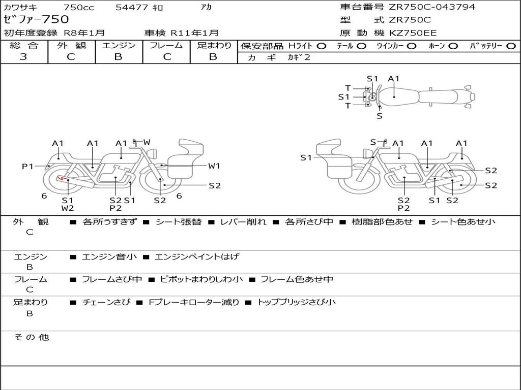 | Номер рамы / VIN | ZR750C-043794 |