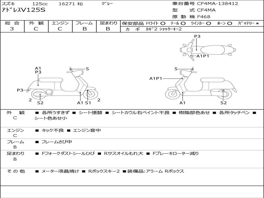 | Номер рамы / VIN | CF4MA-138412 |