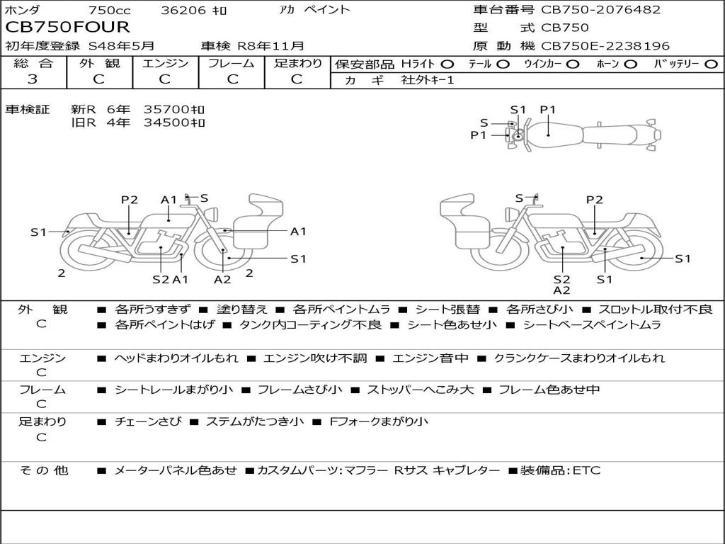 | Номер рамы / VIN | CB750-2076482 |