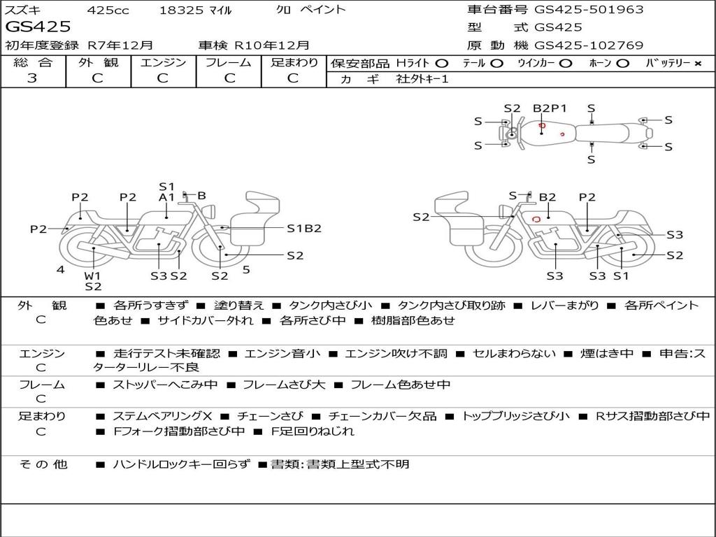 | Номер рамы / VIN | GS425-501963 |