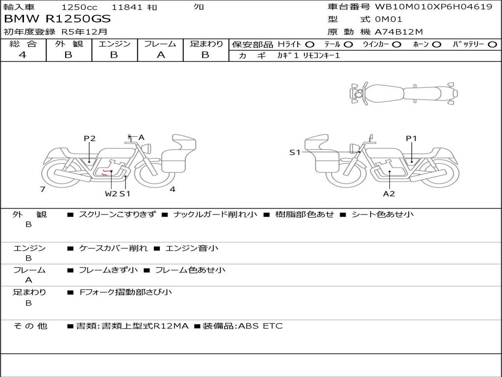| Номер рамы / VIN | WB10M010XP6H04619 |