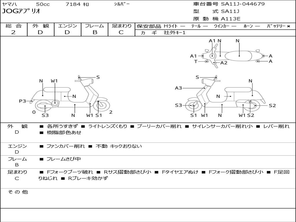 | Номер рамы / VIN | SA11J-044679 |