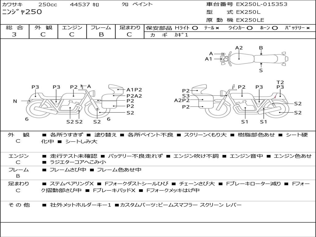 | Номер рамы / VIN | EX250L-015353 |