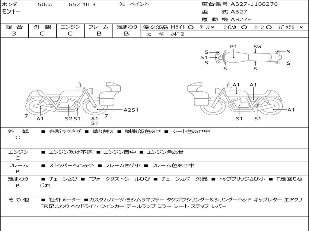 | Номер рамы / VIN | AB27-1108276 |