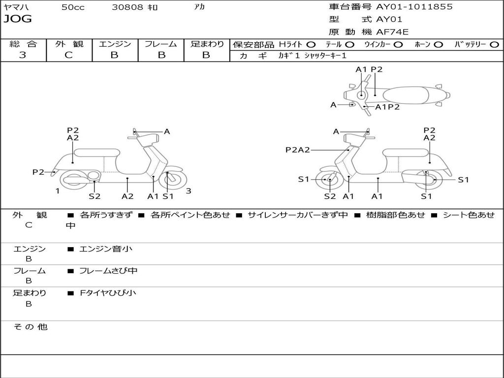 | Номер рамы / VIN | AY01-1011855 |