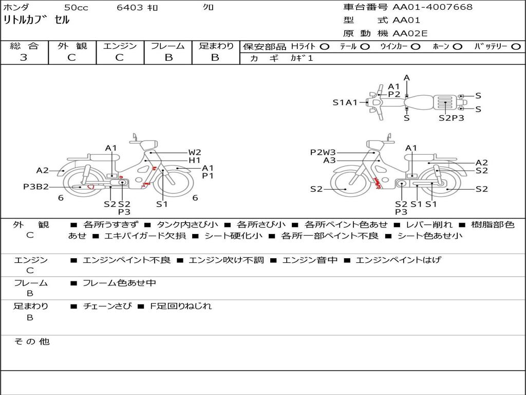 | Номер рамы / VIN | AA01-4007668 |