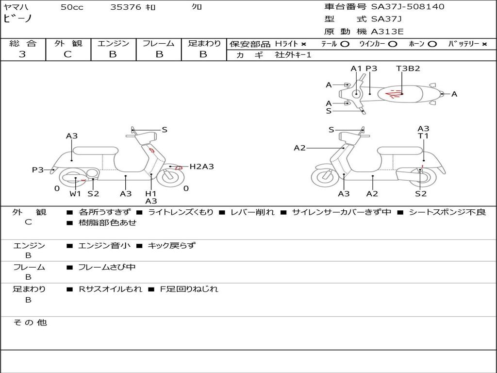 | Номер рамы / VIN | SA37J-508140 |