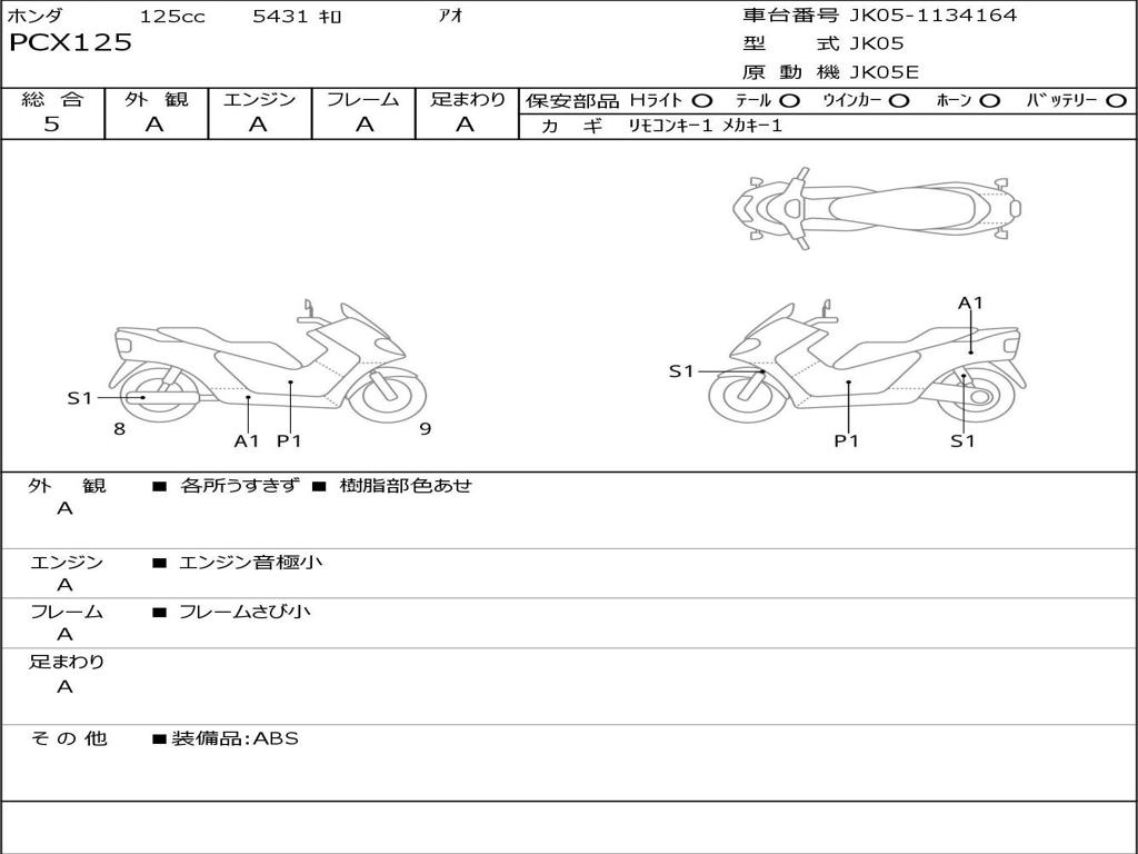 | Номер рамы / VIN | JK05-1134164 |