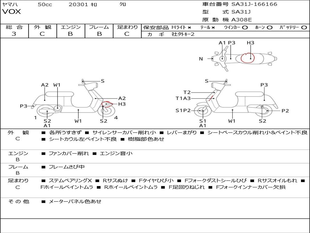 | Номер рамы / VIN | SA31J-166166 |