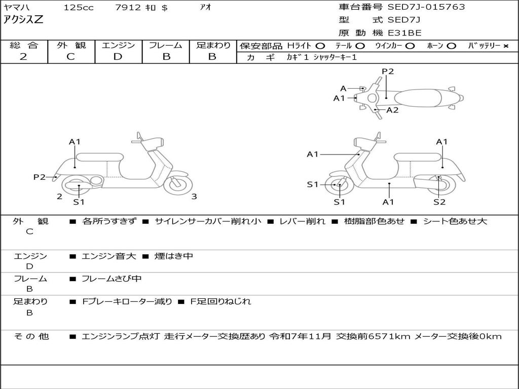 | Номер рамы / VIN | SED7J-015763 |
