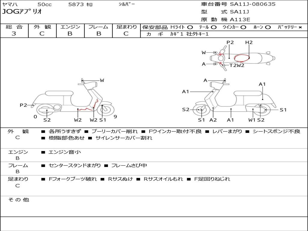 | Номер рамы / VIN | SA11J-080635 |