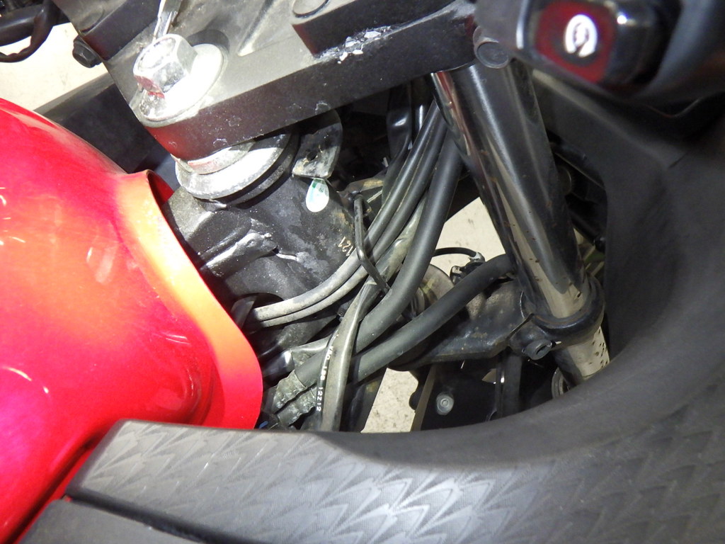 | внешняя часть вилки | потек масла <много> |