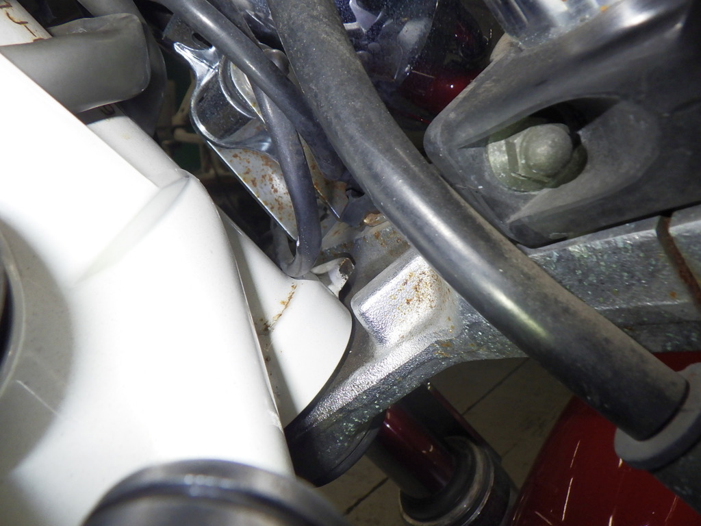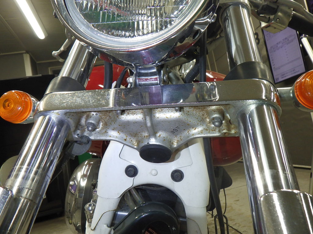 | внешняя часть вилки | царапины <много>, следы коррозии, потек масла, слабый |