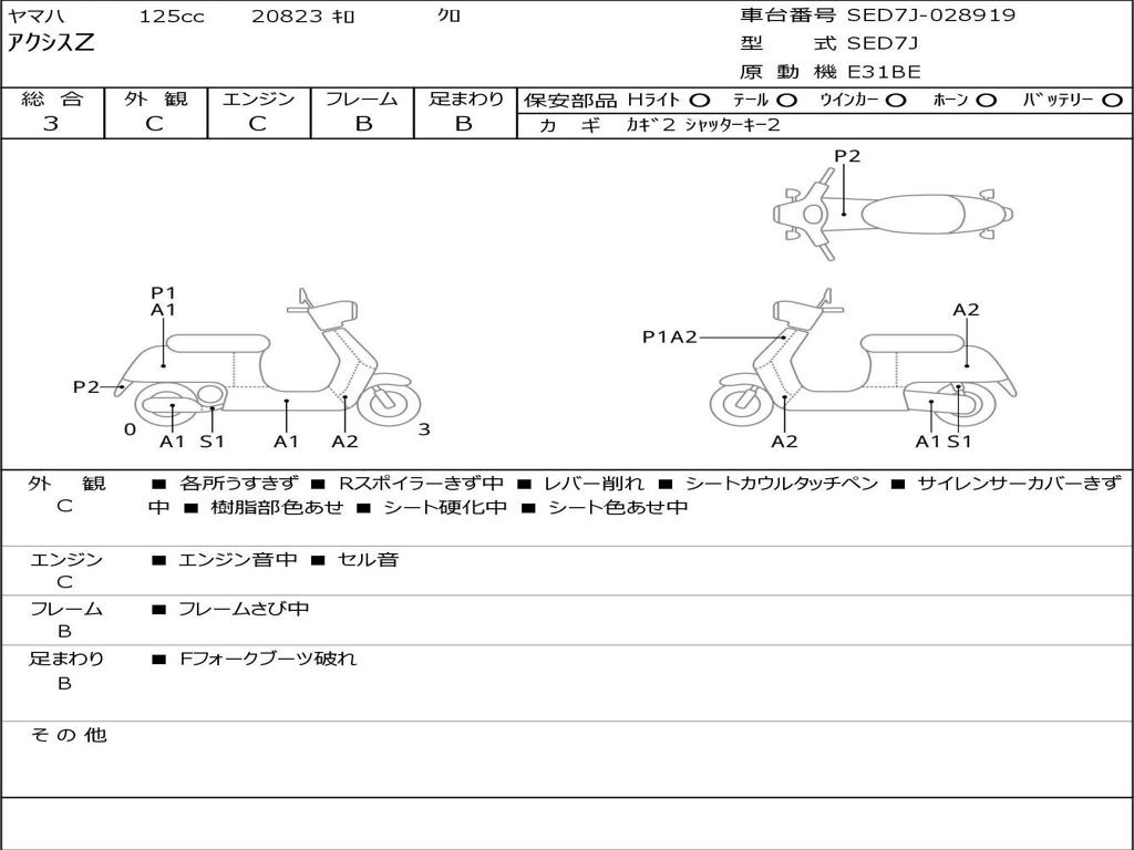 | Номер рамы / VIN | SED7J-028919 |