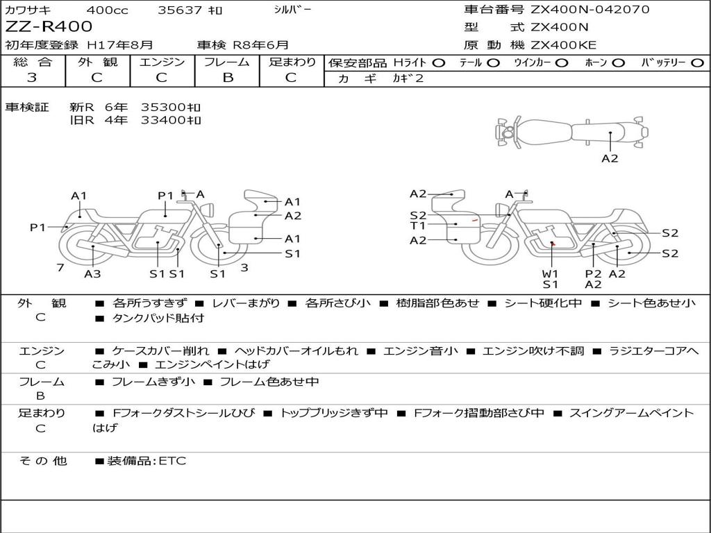 | Номер рамы / VIN | ZX400N-042070 |