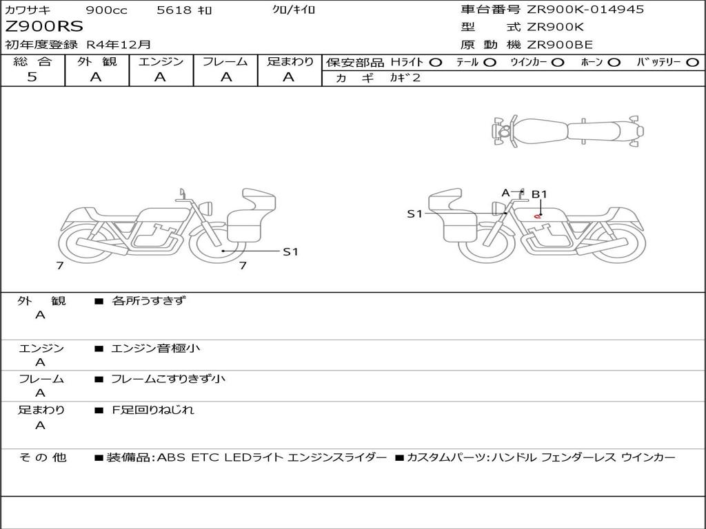 | Номер рамы / VIN | ZR900K-014945 |