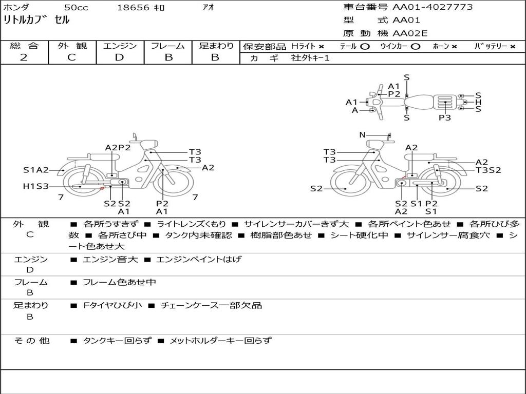 | Номер рамы / VIN | AA01-4027773 |