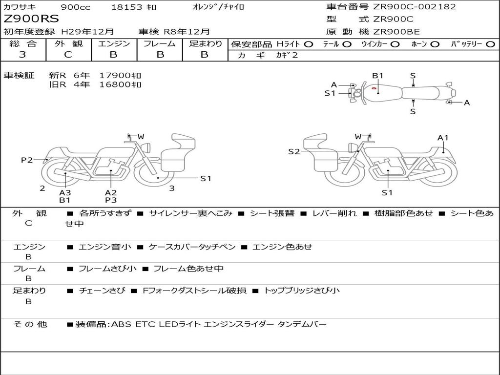 | Номер рамы / VIN | ZR900C-002182 |