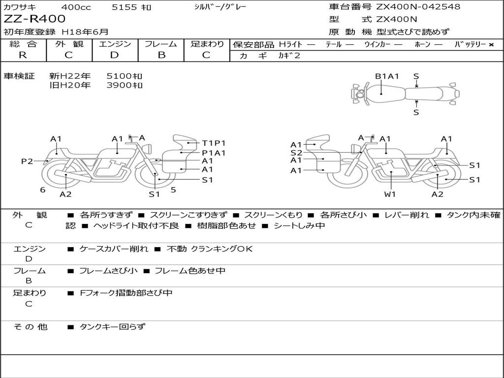 | Номер рамы / VIN | ZX400N-042548 |