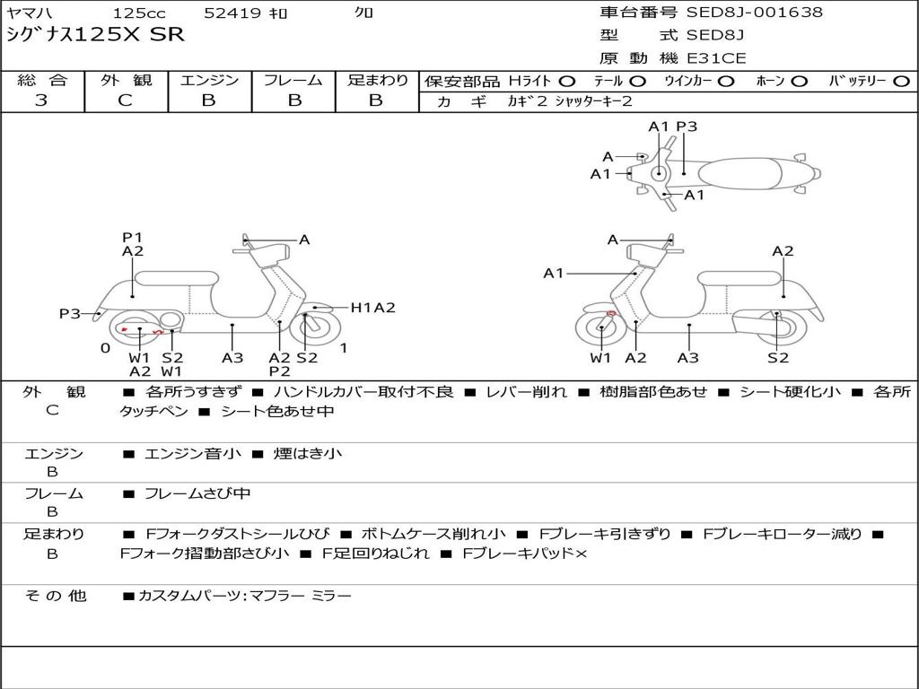 | Номер рамы / VIN | SED8J-001638 |