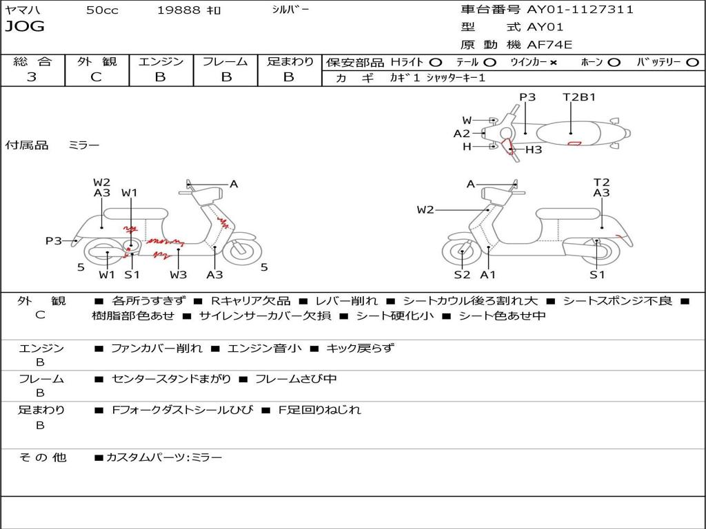 | Номер рамы / VIN | AY01-1127311 |