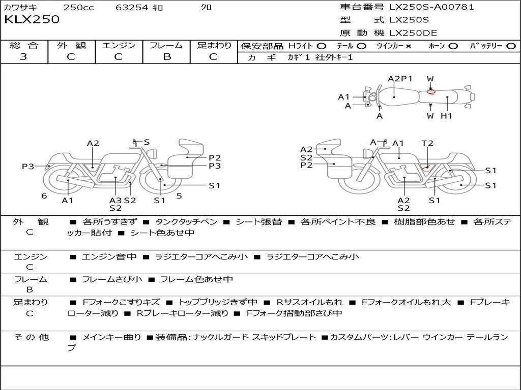 | Номер рамы / VIN | LX250S-A00781 |