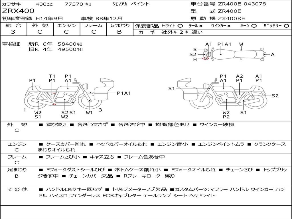 | Номер рамы / VIN | ZR400E-043078 |