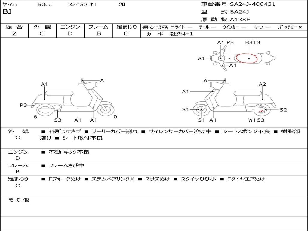 | Номер рамы / VIN | SA24J-406431 |