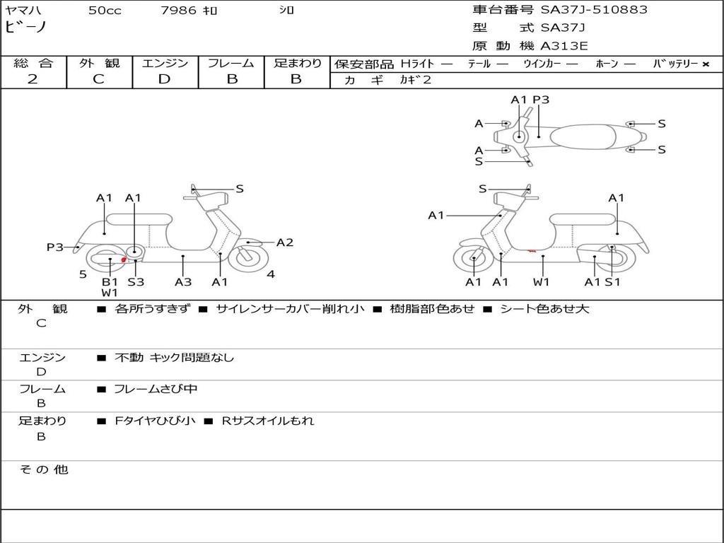 | Номер рамы / VIN | SA37J-510883 |