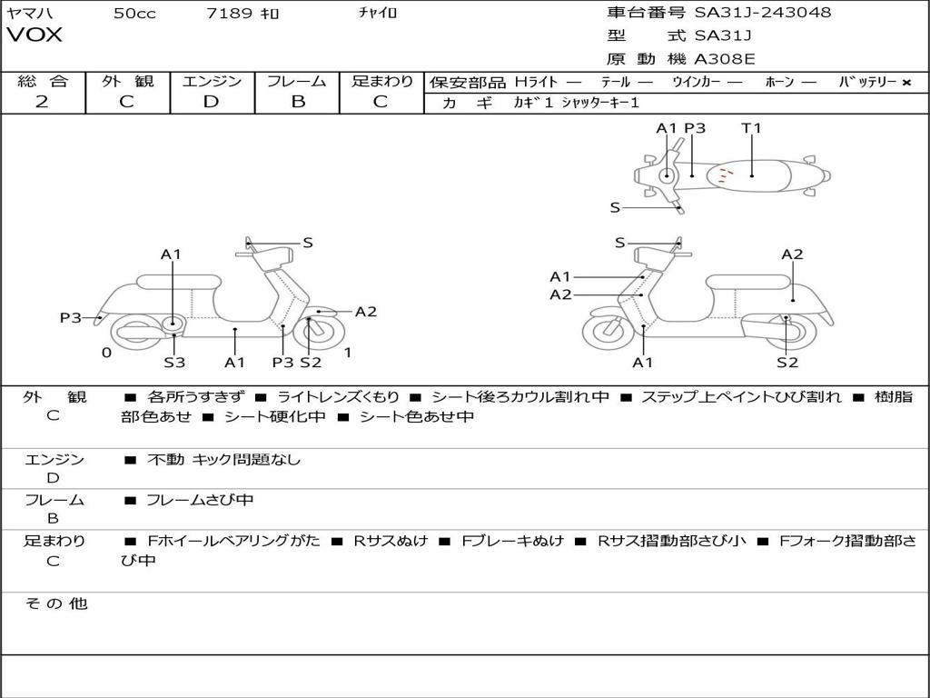 | Номер рамы / VIN | SA31J-243048 |