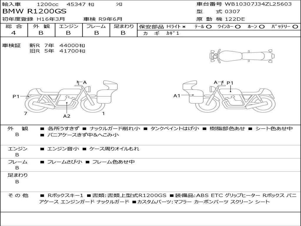 | Номер рамы / VIN | WB10307J34ZL25603 |